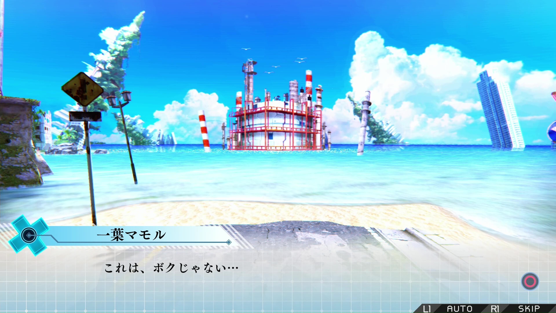 新しく流れ着いた(浮上した?)廃墟を見て、驚くマモル。